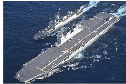 海上自衛隊から「いずも」「たかなみ」の護衛艦、インド海軍は駆逐艦「ランヴィジェイ」フリゲート艦「サヒャドリ」等が参加しました。今回の訓練において、護衛艦からインド海軍の艦艇に初めて洋上燃料補給を実施しました。これは日本とインドが物資や役務を融通しあうための協定(物品役務相互提供協定ACSA:Acquisition and Cross-Servicing Agreement)に基づく補給で、食料や燃料、医療等を相互に提供し、安全保障や防衛協力を円滑に進め連携の実現性を高める狙いがあります。インドは、米国、オーストラリア、イギリス、カナダ、フランスに続く第6番目の締結相手国になります。