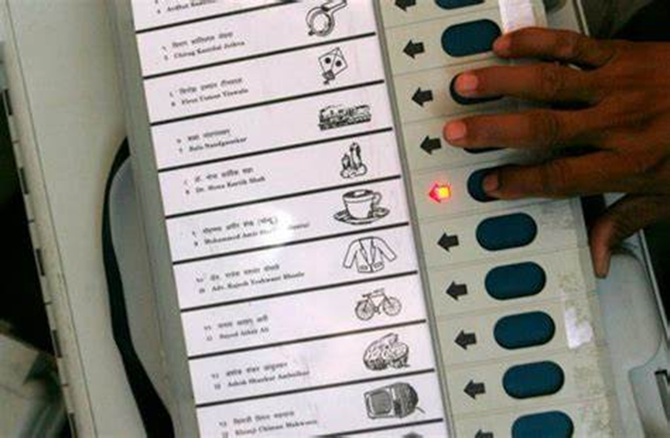 (候補者名と政党のシンボルマークが記載されたEVM: rediff.com)